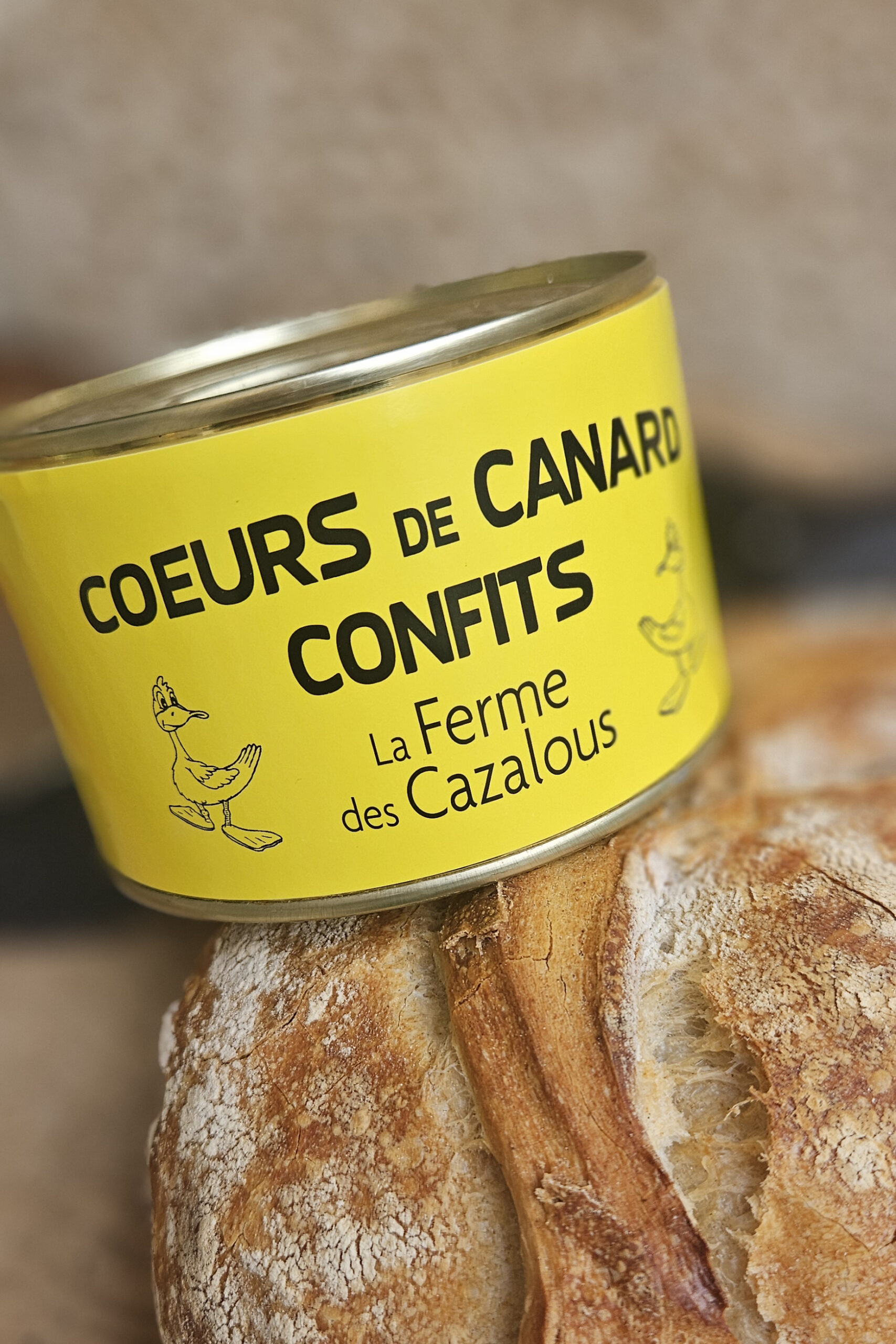 Coeurs de canard confits de la ferme des Cazalous . Conserve de 200 g.