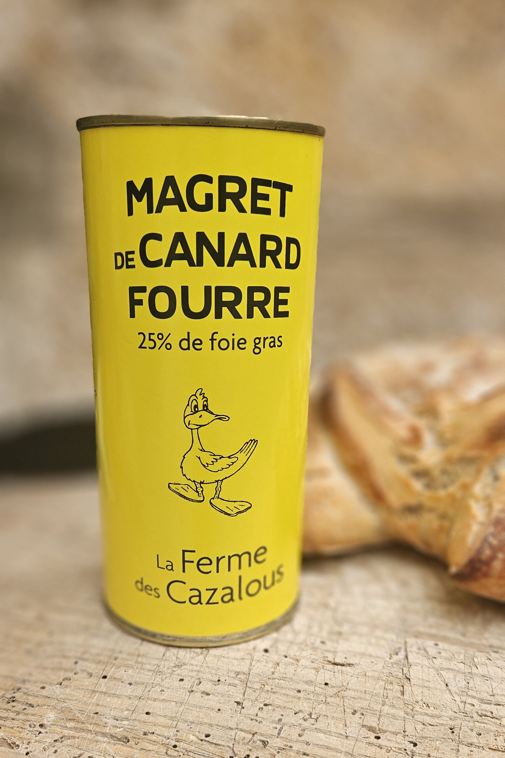 Magret de canard confit fourré avec 25 % de foie gras de la ferme des Cazalous . Conserve de 300g.